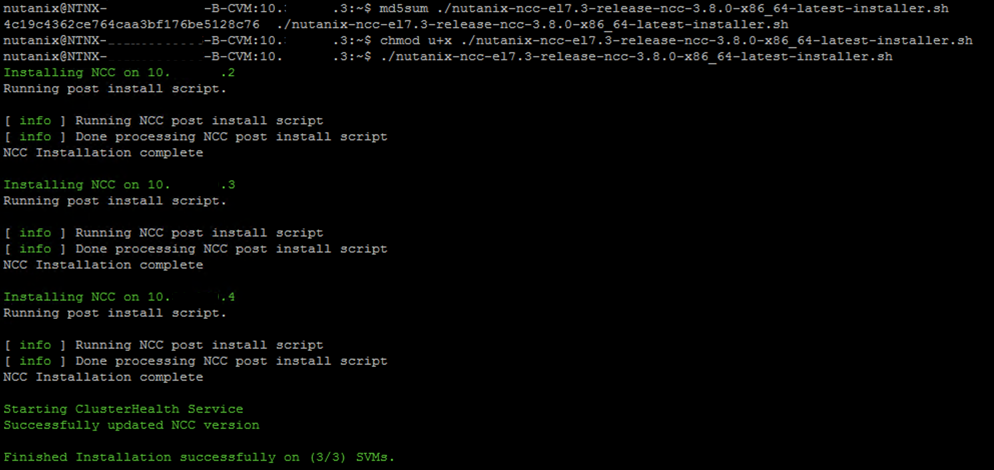 - Lastly run the script. The script will remove the current NCC package installed on the CVM and replace with the new install. The script doesn’t cause any kind of downtime but you might want to run the script under change control.