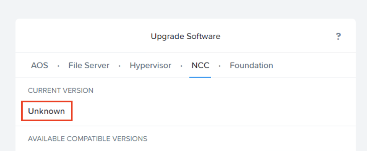 Occasionally upgrading the NCC within the Prism Element fails and the version installed shows as ‘Unknown’