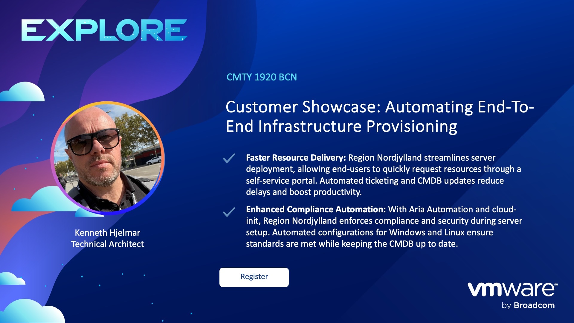 Customer Showcase: Automating End-to-End… Steven Orkisz VMware October 28, 2024October 16, 2024 1 Minute Customer Showcase: Automating End-to-End… Please share this upcoming #VMwareExplore CMTY QuickTalk Session! Broadcom Social Media Advocacy Share this: Click to share on X (Opens in new window) X Click to share on Facebook (Opens in new window) Facebook Like Loading... Published October 28, 2024October 16, 2024