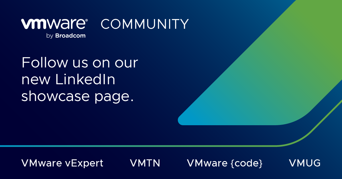 The VMware Community – including VMware {code}, vExpert, VMUG, and the VMTN Forums, has a new social home on LinkedIn! If you spend time on LinkedIn, join our conversation there 🗣️ #VMwareCommunity