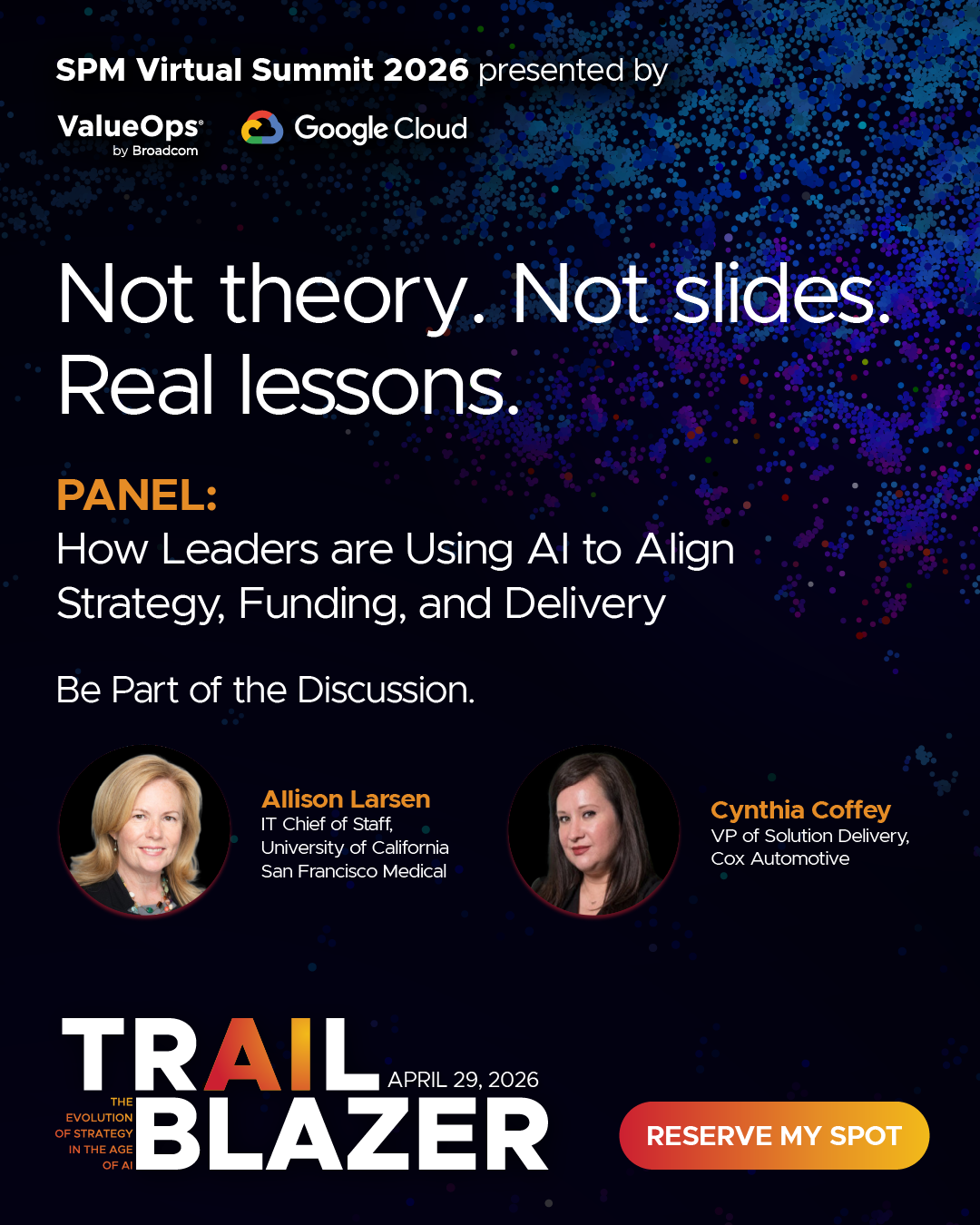 When AI starts influencing funding decisions, who is accountable? That question is showing up in real leadership conversations right now. At the SPM Virtual Summit, presented by ValueOps® by Broadcom and Google Cloud, we’re bringing together leaders to talk about how AI decisions are actually being made inside complex organizations. Featuring: ⭐️ Allison Larsen, IT Chief of Staff, UCSF Health ⭐️ Cynthia Coffey, VP of Solution Delivery, Cox Automotive ⭐️ Brian Nathanson, Head of Product Management for Clarity® by Broadcom This is not a high-level conversation about AI potential. It’s a practical discussion about governance, accountability, and what strategic alignment really looks like when AI becomes part of portfolio planning. If these are the kinds of conversations happening in your organization, this session for you. Join us April 29 at 11:00 AM ET. Save your seat today: