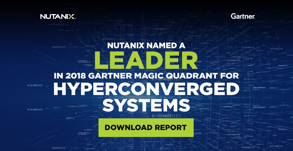 It was announced earlier today that Nutanix was named a leader in the 2018 Gartner Magic Quadrant for Hyperconverged systems. This is a wonderful achievement for Nutanix and very well deserved. They have come a very long way in the last 9 years! Congratulations! Link to the twitter announcement here Learn more here